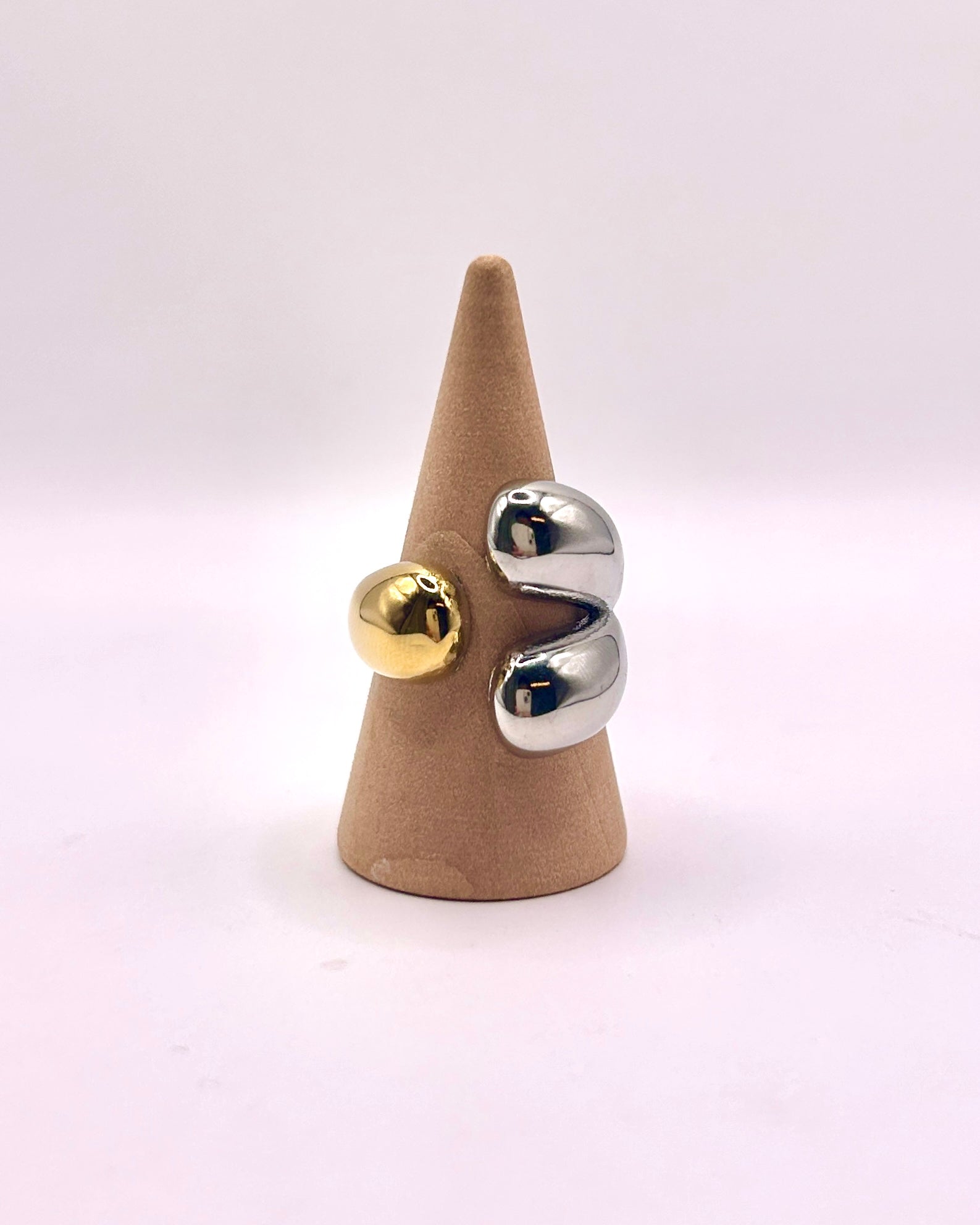Bague bicolore, réglable en acier inoxydable. Résiste à l'eau et à la vie.